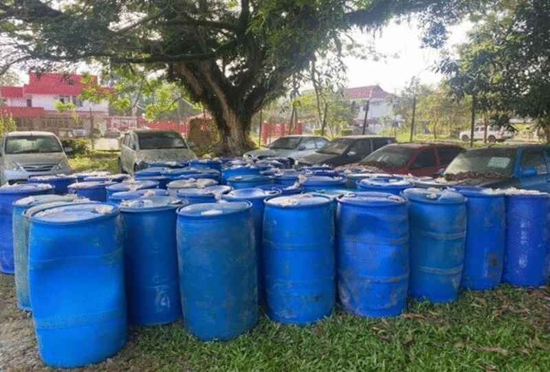 “警员过后在码头及附近沼泽林起获110个装有汽油的油桶,走私的汽油量估计价值4万令吉。”