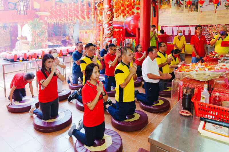 该堂众理事、青年团、妇女组执委及善信一同在清水祖师坛前焚香顶礼膜拜。