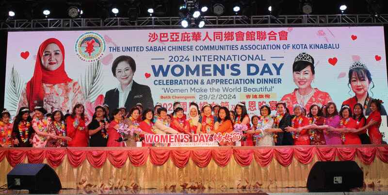 (亚庇1日讯)配合国际妇女节,沙巴亚庇华人同乡会馆联合会主办2024年国际妇女节庆典暨感恩晚宴,表彰杰出女性所取得的成就,借此激励更多女性努力上进,勇敢 追梦。