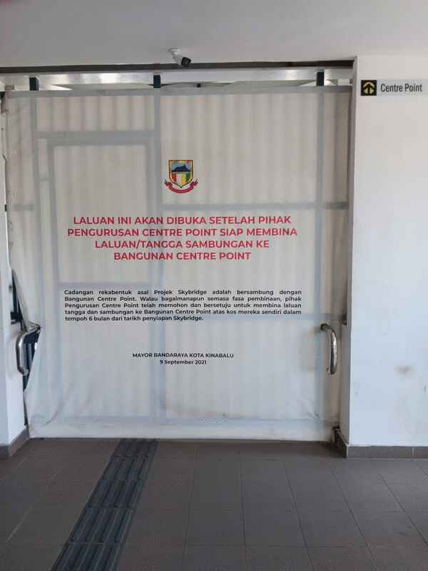 (亚庇5日讯)于2021年9月啟用至今的亚庇最长冷气行人天桥,剩下通往沙巴太平洋商业中心的接口仍被封死,从亚洲城前往该中心的行人依然须冒着生命危险越过马路。