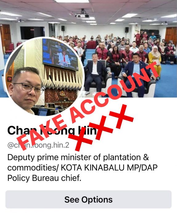 (亚庇6日讯)种植及原产业部副部长拿督陈泓缣遭人冒名开设脸书账号。