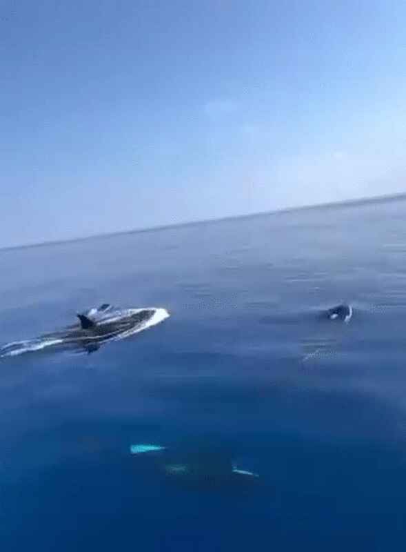 马来西亚珊瑚礁检查组织经理阿兹敏法达分享的视频显示,一群虎鲸近距离游在快艇旁,浮到水面喷气再跳入海中,画面相当震撼。