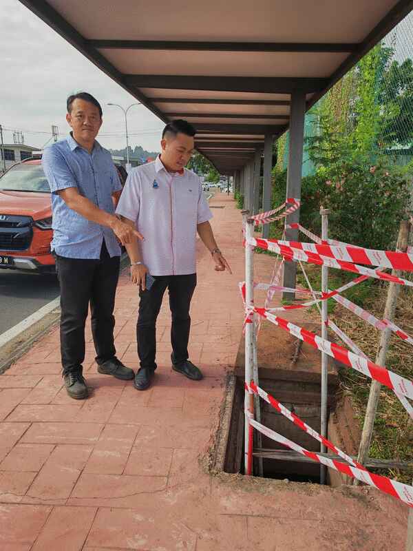 (亚庇28日讯)沙巴崇正学校外出现“人行道陷阱”,电讯承包商疑作业后没把沟渠盖板盖上,亦未设置任何警示标誌,导致一名崇正生昨日一时不察坠洞,身体多处受伤,下颚也须缝针。