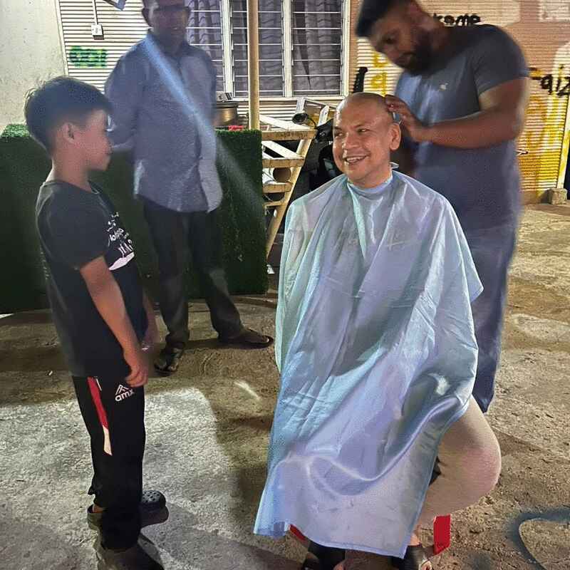 他说,突然冒出一位身份高贵的“理髮师”,此人便是高坑区州议员拿督古兰海达,对方拿起推髮器笑称要为他服务。