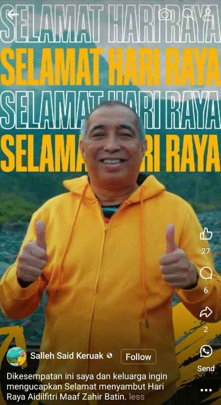 “我们沙巴人庆祝所有节日——开斋节、华人新年、圣诞节和丰收节。我和家人向所有庆祝开斋节的人们,特别是古打毛律区,致以衷心的祝福。”