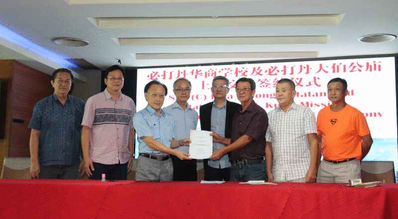 代表华商学校签约的有董事长锺万强、副董事长郑贤光及财政李玉章;而代表大伯公庙的有主席许威良、秘书甘庆喜及财政蔡志豪。