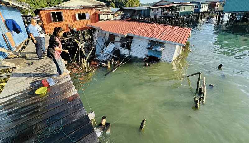 (山打根16日讯)山打根甘榜亚逸第6桥的一间水上高脚屋在周一晚上突然倒塌,育有13名孩子的母亲及时带着孩子逃出天生。