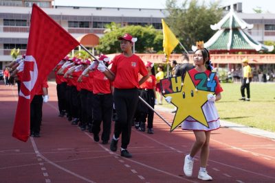 另一方面,该校邀请校园警察李玉金副警监及两位警长担任步操比赛评委,红队以整齐的步伐脱颖而出,荣获步操比赛冠军,屈居全场总亚军(总分948分)。越野赛跑冠军黄队也凭借运动员出色的表现,夺得全场总季军(总分878.5分)。啦啦队舞蹈比赛则由蓝队夺得冠军。