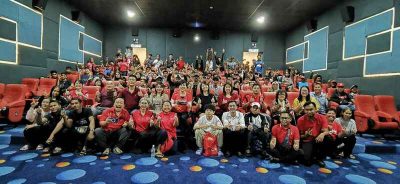 (亚庇9日讯)坐落在吧巴百可丽商业城的10 Star Cinemas于上周举办开幕仪式,美嘉城集团总裁拿督黄小娟为激励和慰劳员工,昨晚在10 Star Cinemas宴会厅派发鸡饭、麦当劳及肯德鸡予基层员工及主管,除了与员工一同享用丰盛晚餐,她还特别包下2个影厅安排1场电影。