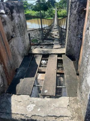 自由民主党中央公共投诉局主任陈文彪指出,原本的吊桥是因为年久失修,导致桥面木板严重破损,这对每天依赖该设施进出甘榜与市区的村民非常危险。