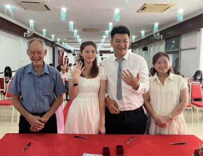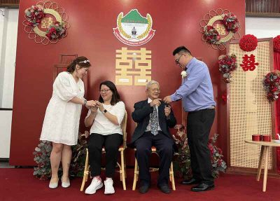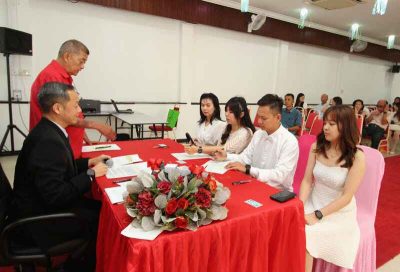 同时,沙巴暨纳闽海南会馆联合会财政王家雄今天在场见证长女王筱茵注册结婚,他受访时表示亚庇商会重新啟动婚姻注册服务,对本地华社来说是一大喜讯。
