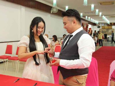 集体注册的5对新人有温俊杰与陈诉颖、倪廷丰与王筱茵、杨成伟与刘善妮、陈凯杰与彭靖茹、锺兴乐与沈翠怡。