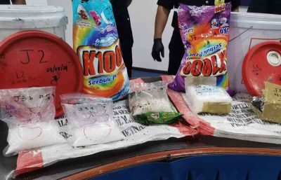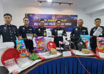 (斗湖29日讯)贩毒集团用洗衣粉包装袋藏毒,企图瞒天过海,结果被警方识破伎俩,起获重达4.5公斤的冰毒,价值27万4320令吉。