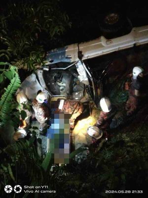 (斗湖29日讯)货卡失控坠下10公尺深的山谷,车内一名华裔中年男子当场丧命。