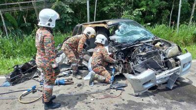 这起车祸是于週五(31日)接近中午时分在丹南往金马旺道路靠近甘榜沙邦(Kg Sapong)的路段发生。死者是一名66岁的男子,重伤者则为一名71岁的老妇。
