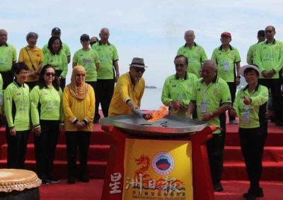 大会主宾沙巴州元首敦朱哈马希鲁丁偕同夫人杜潘诺丽达嘉丝妮,为决赛主持鸣锣开幕仪式,并在里卡士海湾仪式台上点燃龙舟圣火,以及见证传统的“端午抛粽子”仪式。