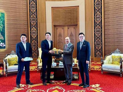 (亚庇10日讯)韩国企业SK Nexilis总裁柳光玟率领沙巴团队,拜会沙巴首席部长拿督斯里哈芝芝诺。