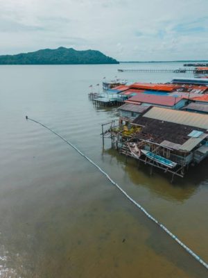 (山打根12日讯)非政府组织婆罗州未来环保组织(FAB)今早在森森水上屋第8桥左侧设置垃圾防护网,确保不再有垃圾衝上海岸。