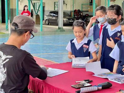 (亚庇14日讯)徐有利叔叔——《哥妹俩》的漫画家今日再次到亚庇中华小学举行签书与交流会,同时破了一项纪录,该校竟然出现哥妹俩创刊号最多的一所学校,共有4名学生拥有哥妹俩1997年的创刊号,都是他们父母的收藏珍品。