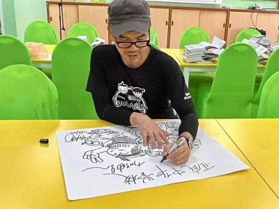 另外,有利叔叔也在该校资料中心为校方特别绘制一幅《哥妹俩》画作为纪念品。校方将把这幅画悬挂在亚庇中华学校的资料中心,成为学校的纪念。