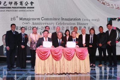 郑国雄昨晚也代表沙巴印务商公会与吉隆坡暨雪兰莪中华印务商公会主席陈耀威签署友好合作协议,旨在深化双方的交流,共享信息与资源,实现共赢。