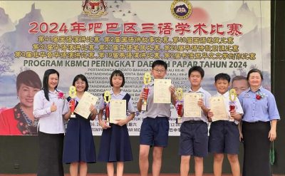 (吧巴14日讯)吧巴圣华小学学生在吧巴区三语学术比赛中取得辉煌的成绩,大唱丰收,一举夺下华语亲善杯、英语演讲冠军杯、华语非华裔演讲冠军杯、诗歌朗诵初小组冠军杯及诗歌朗诵高小组冠军杯。