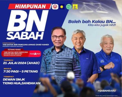 据了解,沙巴国阵发予媒体的邀请函,说明首相兼希盟主席安华将以特别嘉宾身份,与国阵主席兼副首相拿督斯里阿末扎希及沙巴国阵主席拿督斯里邦莫达出席活动。