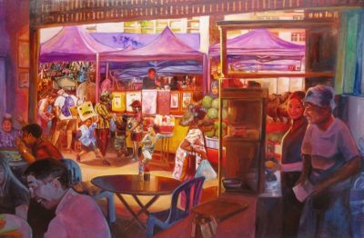 美术展分为3个展区,第一个展区主要展示有关茶餐室的画作。所有画作的色调偏向暖色,符合马来西亚人常于早上至下午到茶餐室消费的习惯。