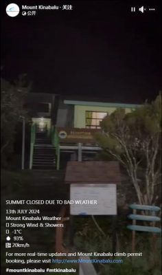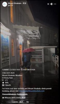 7月13日和15日,沙巴公园以强风和暴雨为由,在登山客于凌晨时分准备出发攻顶之前,通知关闭山顶,让不少登山者感到失望,并怀疑他们是否物有所值。