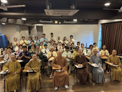 两天的开示分别由觉天法师、禅戒法师、禅正法师及振平法师负责,由寂静禅林方丈开仁长老作补充及在最后一堂课以“三学的运用”作总结。