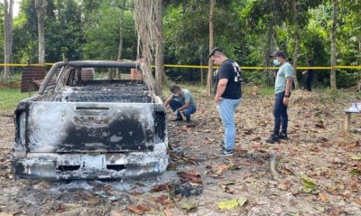 山打根警方昨天接到一起货卡在园丘内起火燃烧的投报,于是派出一支警队前往现场调查,发现一辆货卡被烧毁但车内无人。