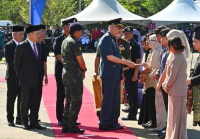 州级英雄日庆典今早掀幕,州元首在上午8时抵达会场后,上台接受军警及医务人员的敬礼,之后检阅由皇家马来军团官兵组成的的皇家仪仗队。