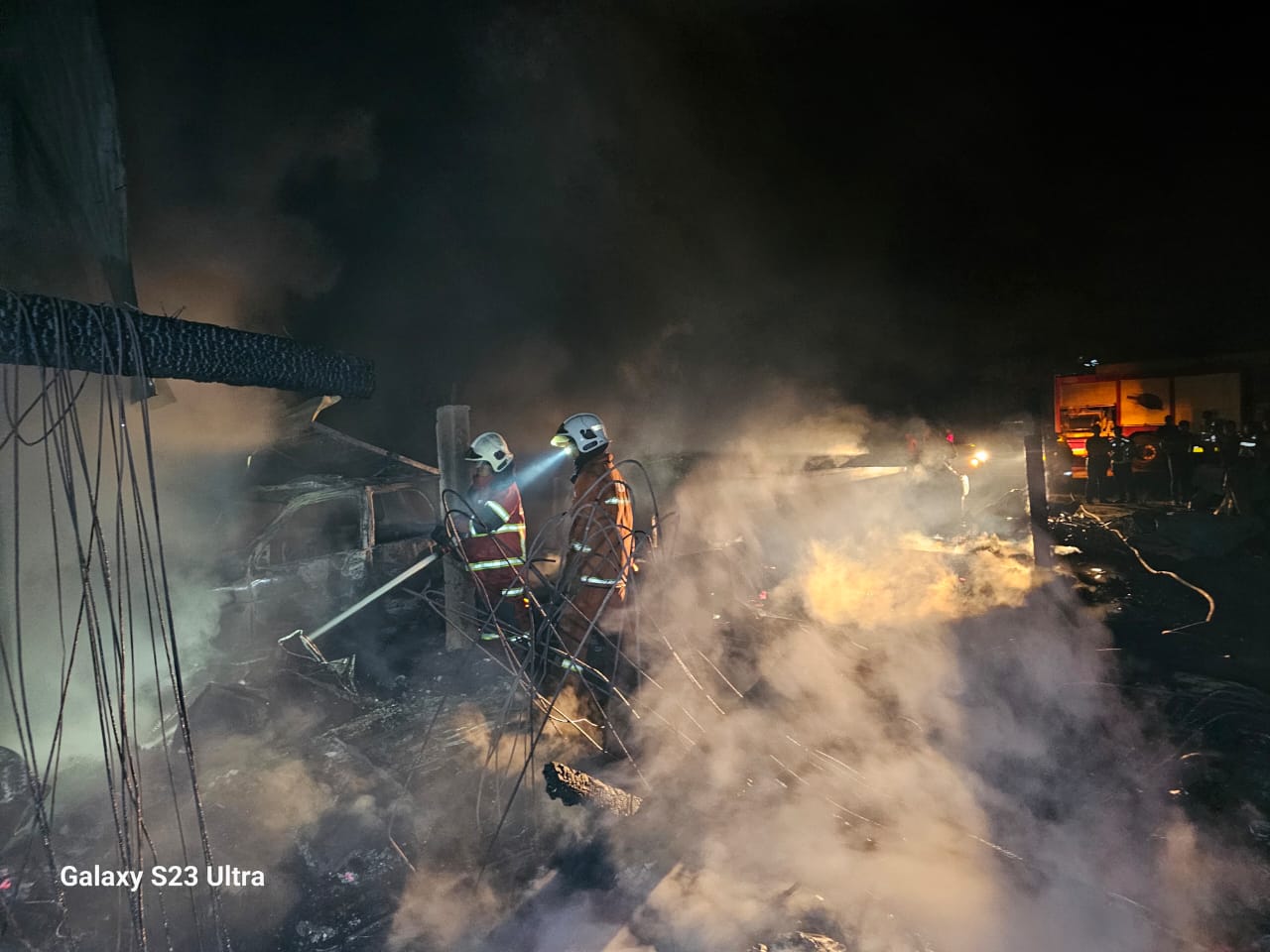 发言人表示,这起火灾发生在必打士冷港路安安百货市场前的住宅区,受灾的2000平方英尺半永久式房屋完全被烧毁,两辆停在屋外的汽车也被烧成空架。