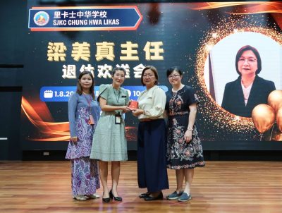 (亚庇2日讯)里卡士中华学校昨日为该校训育主任梁美真举办简单隆重的荣休欢送会,董家教员生齐聚送上真挚祝福,感谢她为校付出将近35载。