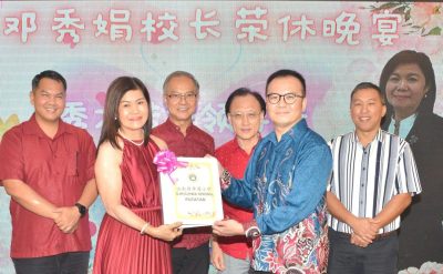 他昨天出席邓秀娟校长荣休晚宴时感谢对方多年来持续发挥华商精神,并表示亚庇商会在1982年9月20日接管必打丹华商学校,有今天的规模和辉煌成就,历任校长贾公喜、黄茂灵、苏瑞文和邓秀娟都功不可没。