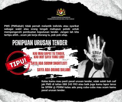 民众若怀疑有人企图设下投标欺诈套圈,可致电联邦财政部沙巴财政机构办事处(088-243993)求证,或直接向反贪会举报。