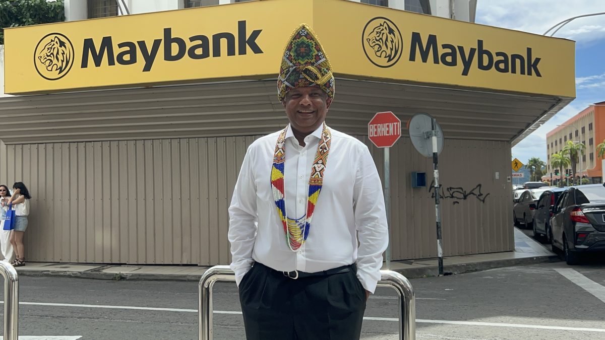 (亚庇13日讯)到访亚庇的壹必投集团(Capital A)首席执行员丹斯里东尼费南达斯不放过协助推广沙巴旅游的机会,到亚庇意外爆红的新网红打卡点—加雅街马来亚银行拍照打卡留念。