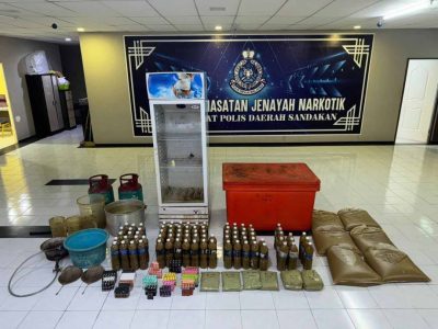 (山打根17日讯)一名来自西马东海岸的男子涉嫌在住家提炼哥冬水及含毒品成分的电子烟液,于周五(16日)中午遭警察上门逮捕。