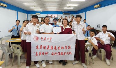 卓嵩原表示,活动是为了纪念陈嘉庚诞辰150周年展开,该大学的“嘉庚精神”海外传播实践队共有境内外16名队员,计划前往马来西亚的吉华独立中学及吧巴中学,柬埔寨的华明学校,两个国家的3所学校开展宣讲活动。