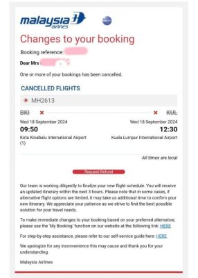 怎料她在前天收到马航电邮,被告知航班被取消,但又没有提供新日期,于是她便尝试退款,结果系统帐单上竟出现540令吉罚款,吓得她立刻停止操作。