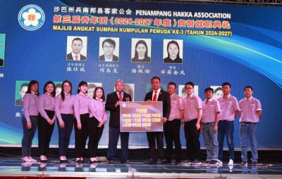 他亦呼吁各个社团、商界领袖及社会贤达大力支持兵南邦客家公会,让该会有更多空间、更大的平台舒展能力、发挥才干及潜能,以完成既定的目标、议程、任务与使命。