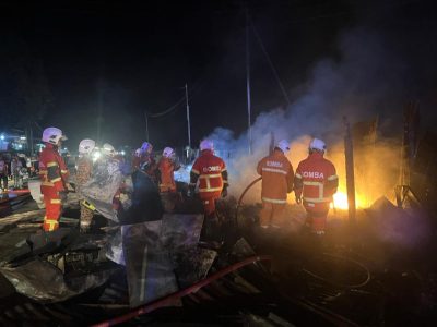 (拿笃11日讯)拿笃13哩处的5个非永久式摊位于今早凌晨的大火中被烧毁。