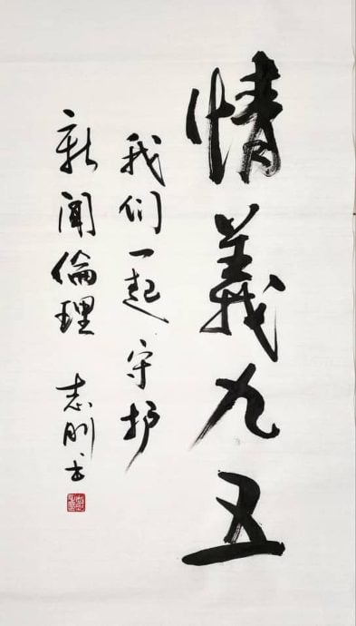 情义九五,我们一起守护新闻伦理。拿督斯里邦里玛张志刚(沙巴书画美术馆顾问)