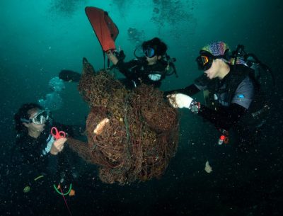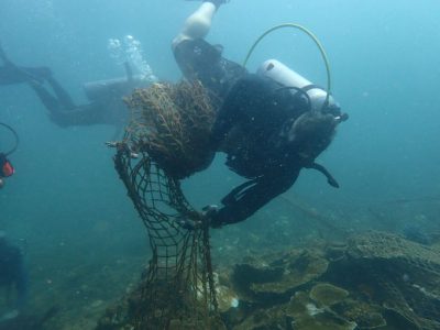 鉴于这种被称为“鬼网”的垃圾对海洋生态造成极大的破坏,多个环保及保育团体加大力度展开海底清理活动。在最近的一次行动中,潜水员在距离亚庇不远的东姑阿都拉曼公园海底成功移除超过140公斤的废弃渔网。