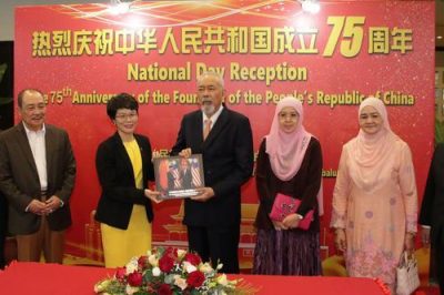 昨晚在沙巴举行的中国成立75周年国庆招待会主宾为州元首敦朱哈马希鲁丁,沙巴首长拿督哈芝芝诺、州内阁成员及政经文教代表均有出席。