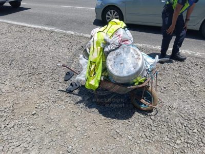 “警方随后派出两辆巡逻车在斗湖大红花路(Jalan Bunga Raya)进行搜寻,最终发现一名男子推着手推车,车内装有几个麻袋。”