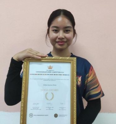 (亚庇10日讯)根地咬技职学院学生伊莉莎卡门埃立凭借题为《致首相的一封信》的作文,在今年度共和联邦女王作文比赛中获得金奖。