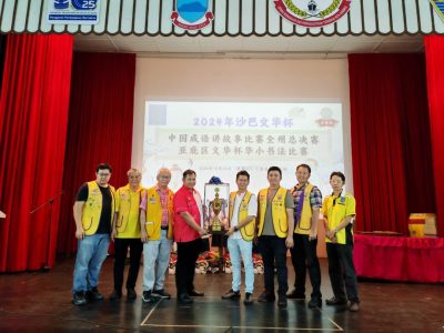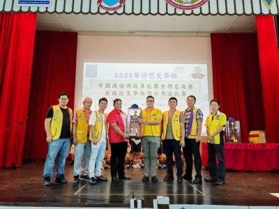 他也感谢所有劳苦功高的狮子会筹委,为活动的举办倾力相助,同时感谢亚庇丝绸狮子会以及斗亚兰狮子会的跨区助阵,古达客家公会会长李永生促成古达/哥打马鲁都区初赛,以及远道而来的丹南华人乡团联合会主席甲必丹锺剑辉、丹南区筹委会主席甲必丹张能春、斗湖文华狮子会会长徐子健,共同成就这年度赛会。