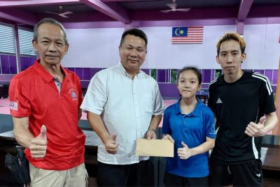 斗亚兰乒乓协会为此奖励她800令吉。郭真琳来自亚庇中华小学,于2022年开始在沙巴乒乓馆练习。今年6月,她在沙巴全州赛中获得10岁组亚军,并获600令吉奖金,进而获得全国赛资格。