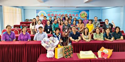 (亚庇21日讯)今在该校视听室为教师陈美意举办欢送会,祝贺她荣升下南南乐育国小学生事务副校长。